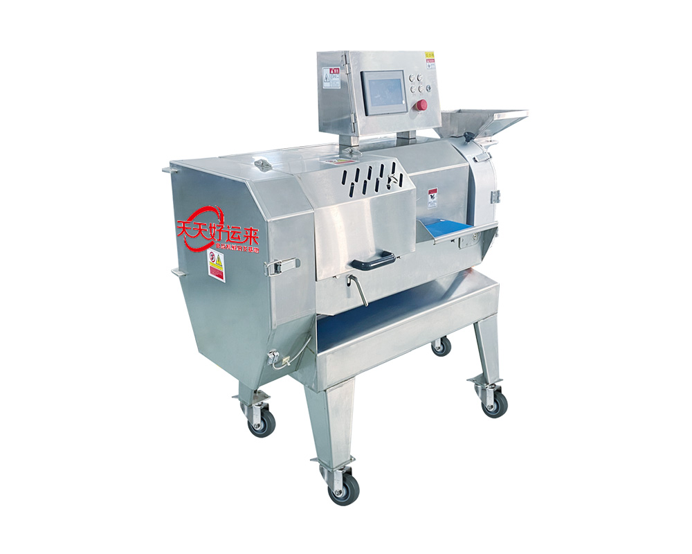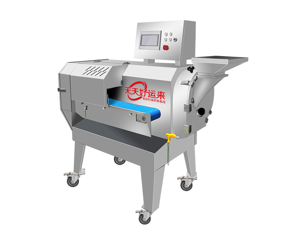 本設備幾乎可切任何瓜果蔬菜,如:切片、絲、丁,末、段等;具備雙調頻功能,一頭是切葉菜類,如長蔥,蒜苗,韭菜,芹菜,白菜,青菜等等,一頭是切球根莖類,如蘿卜,土豆,紅薯,芋頭,筍,洋蔥,茄子,蘋果,生姜等等眾多瓜果類蔬菜。葉菜類的輸送帶速度和轉刀速度采用PLC數控屏操作,均可獨立控制,葉菜切割規格:1~50mm可調。切部份根莖類;根徑部份刀盤范圍:片:2-10MM,絲:2-6MM,丁:8MM、10MM、12MM、15MM、20MM選一;一機多用,功能強大,產量高,操作簡單,皮帶可快速拆卸,并可水槍沖洗,清洗方便。